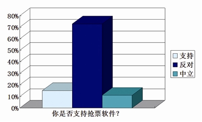 记者通过浙江法制报微信公众号做了个随机小调查,调查结果显示:对于抢票软件的存在,大部分人还是持反对态度。