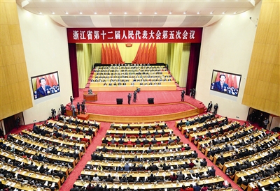 | 1月16日,浙江省十二届人大五次会议在省人民大会堂隆重开幕。钱璐斌 摄 |