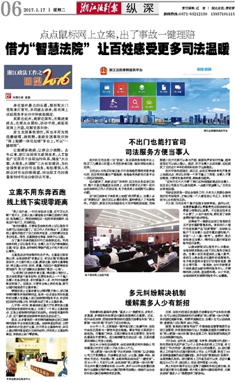 让数据多跑路,让群众少跑腿。去年以来,浙江法院将互联网技术、人工智能广泛应用于法院运行体系,健全“大立案、大服务、大调解”三大机制建设,为社会提供更好的司法服务,有效增强人民群众对司法的获得感、对法院工作的满意度和对司法公信的认可度。