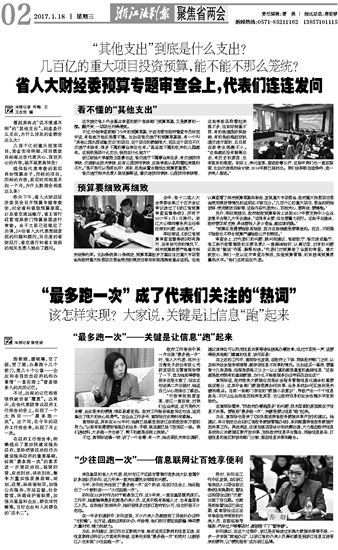 李旺荣说,《浙江省预算审查监督条例》即将施行,在有法可依的情况下,相关预算就要严格遵守相关法条约束。比如条例第13条规定,预算草案初步方案应当对重大专项资金和政府重大投资项目资金使用的绩效目标和实现措施做重点说明。但他认真查看了相关预算草案和报告,发现重大专项资金、政府重大投资项目资金使用绩效等情况的说明还不够充分。“几百个亿的重大项目,资金的明细安排、使用绩效目标等,这些内容代表关心,百姓关心,要具体,要精准。”