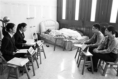 | 被告人因酒驾出车祸而无法到庭参加诉讼,法院上门开庭。 |