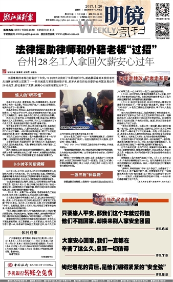 浙江法制报 一版要闻 00001 法律援助律师和外籍老板“过招” 2017-01-26 2 2017年01月26日 星期四