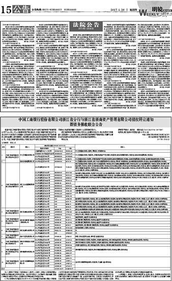 中国工商银行股份有限公司浙江省分行与浙江省浙商资产管理有限公司债权转让通知 暨债务催收联合公告