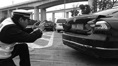 | 在柯桥西事故处理点对事故车进行拍照 |