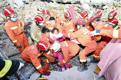本报讯 2月3日上午9点48分,经过现场救援人员25个小时不间断地紧张救援,文成县民房坍塌事件的最后一名被困人员被成功搜救出,救援工作正式结束。截至2月3日上午10点,9名被困人员的搜救工作全面完成,其中7人不幸遇难,2人正在医院接受救治。