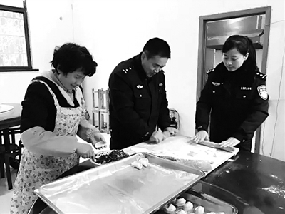 农历大年三十,在这万家团圆的日子里,金华婺城公安分局白龙桥派出所里,一群民警已在厨房中忙碌起来。因为每年除夕夜的工作任务都很繁重,除了日常的接处警,民警们还要到辖区街面巡逻、检查消防安全、开展禁限燃宣传等。