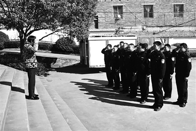 1月26日,腊月廿九,在兰溪市公安局梅江派出门口,13位民警整齐站列,向梅江派出所食堂的黄阿姨郑重敬礼。