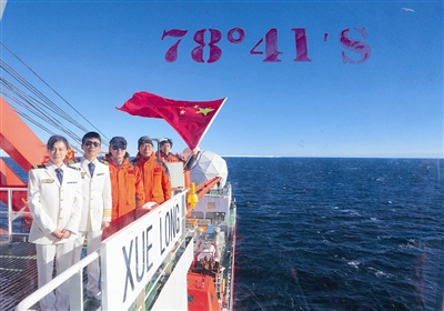 中国第33次南极科学考察队搭乘的“雪龙”号科考船日前行驶到南纬78°41′罗斯海水域。这是“雪龙”号在南半球到达的最高纬度,也刷新了全球科学考察船在南极海域到达的最南纪录。