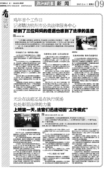 鸡年首个工作日 记者踏访杭州市公共法律服务中心 听到了三位妈妈的遭遇也感到了法律的温度