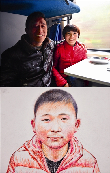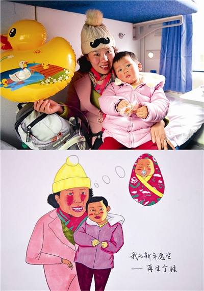 2月4日,从江西景德镇开往浙江杭州的K4533次务工专列上,约 1600名乘客踏上返程务工之旅。南昌铁路局的工作人员选择部分不同年龄段的乘客,将他们的新年愿望绘制成图画,赠予他们一路前行。