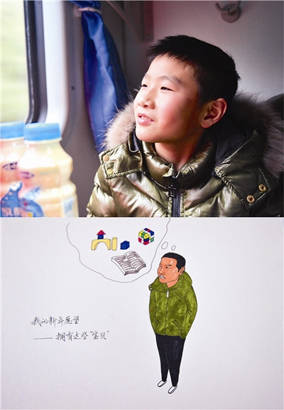 12岁的旅客黄德辉乘车前往余姚读书,他目前在余姚读小学5年级。黄德辉的新年愿望是拥有一些课外书籍、魔方和积木。