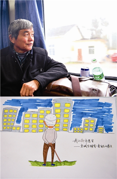 63岁的旅客黄汉学乘车前往余姚务工。黄汉学的新年愿望是今年能在余姚购买一套属于自己的房子。