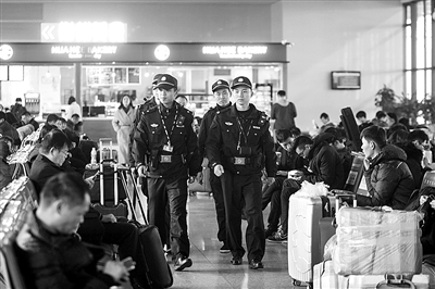 春节期间,台州市火车站派出所民警全面加强安保,并和当地武警、特警一起不间断巡逻,确保旅客安全出行。