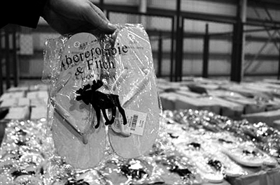 日前,杭州海关隶属舟山海关对一票申报品名为PU鞋的出口货物进行查验时,发现一打开纸箱就有一股刺鼻的气味,这些气味都是从一些印有“ABERCROMBIE & FITCH”字样的拖鞋上散发出来的。这些人字拖用简单的塑料袋包装,一捆捆压放在箱内。“这批拖鞋做工粗糙,气味大,侵权的可能性很高。”凭借长期的查验经验,海关工作人员判断这很有可能是一批侵权货物。果然,在随后的调查中,当事人无法提供授权证明。