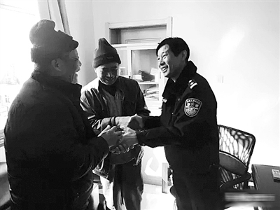 哥俩在寒暄中一起离开派出所,临走时,他们使劲地跟值班民警握手道谢……