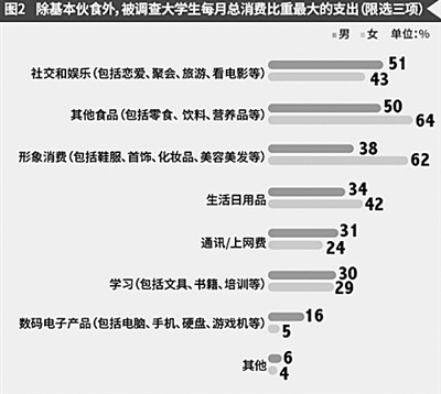 近期,有调查报告称:①在校大学生每月平均开销为1212元;②94%的学生生活费由父母或亲戚提供;③24%的学生偶尔生活费不够用,8%经常不够用;④39%的被调查学生反映身边有人用校园贷类借款。你大学每月生活费多少钱?