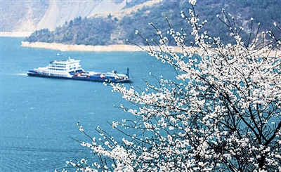 图为2月19日,一艘货轮行驶在长江湖北省秭归县江段。