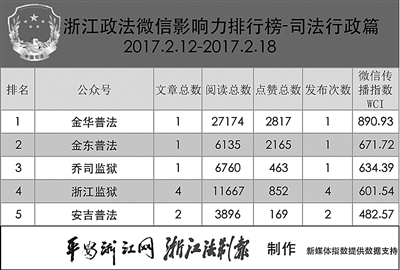 浙江政法微信排行榜第87期