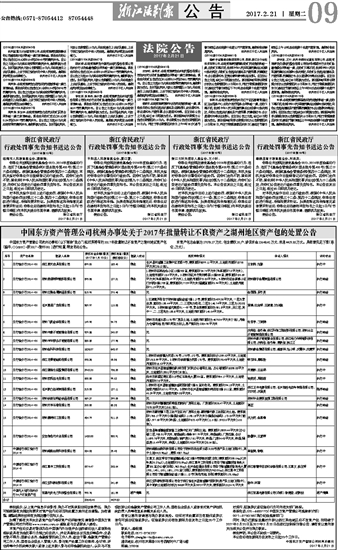 中国东方资产管理公司杭州办事处关于2017年批量转让不良资产之湖州地区资产包的处置公告