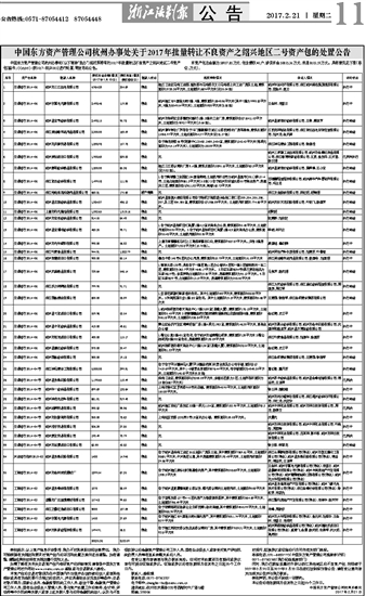 中国东方资产管理公司杭州办事处关于2017年批量转让不良资产之绍兴地区二号资产包的处置公告