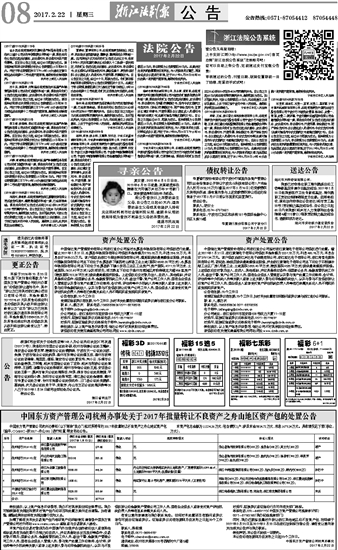 中国东方资产管理公司杭州办事处关于2017年批量转让不良资产之舟山地区资产包的处置公告