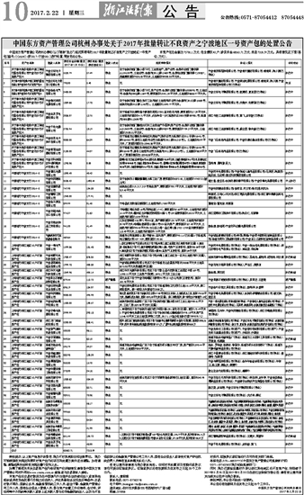 中国东方资产管理公司杭州办事处关于2017年批量转让不良资产之宁波地区一号资产包的处置公告