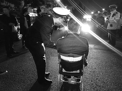 | 一违规司机体验远光灯。吴健 摄 |
