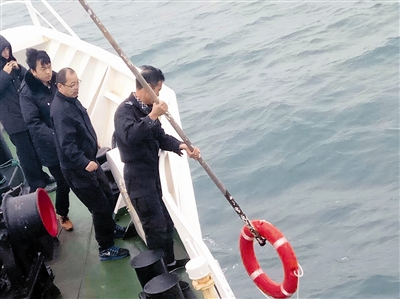 | 渔政船搜寻到事故船舶上的救生圈 |