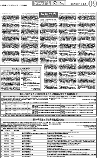 中国东方资产管理公司杭州办事处与林东债权转让暨债务催收联合公告