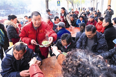 2月27日,农历二月初二,温州市民间有吃芥菜饭的传统习俗。当日,温州各地“爱心亭”、义工队以及民间组织纷纷开展免费赠送芥菜饭活动,为路人和外来务工人员送上一份美味和温馨。购买这些食材的资金全部来自企事业单位、社会团体和个人捐献。