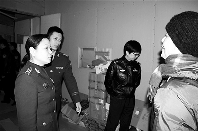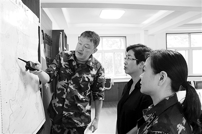 | 教导员张阳(左)向上城区区委书记陈瑾(中)汇报火灾隐患整治情况 |