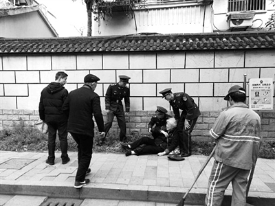 3月15日上午,一位正在杭州保俶路散步的老太太,突然跌倒在路边的绿化带里。此时,省府警卫中队四名武警战士恰好路过,见状冲上前去帮忙,其中一位战士跑向附近的社区医院借来了担架,他们将老人扶上担架后,送到了社区医院。经诊断,老人跌伤了左手臂,已无大恙。