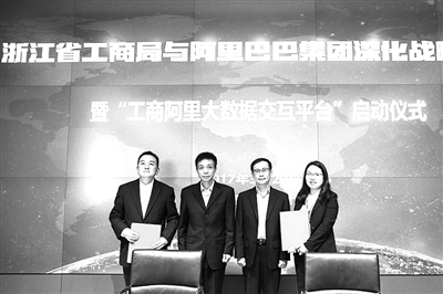 在“工商阿里大数据交互平台”,双方将网店信息、统计信息、信用信息、违法信息等相关数据在平台上进行交互,实现主体身份比对、经营主体亮照、信用信息交互、线索推送和案件协查等功能。仪式现场,工作人员对阿里平台上登记的浙江网店主体身份信息与工商数据库进行了比对校验,准确率达98.8%,电商主体身份的在线校验变成现实。
