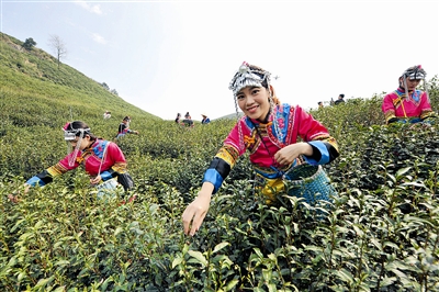 4月6日,几位穿着畲族服饰的姑娘正在仙居县安岭乡四联村茶园采摘春茶。随着气温逐步回暖,仙居县唯一少数民族畲族的聚居地、平均海拔450多米的安岭乡5000余亩春茶进入采摘期,茶农穿梭在茶园中,抢抓农时采摘春茶。