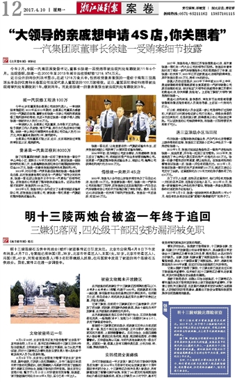 4月5日20时,北京市昌平区官方政务微博“北京昌平”发布通告称,3月20日,昌平区政府得知明十三陵石五供2件烛台被盗后,立即组织公安力量成立专案组,全力以赴开展侦破,并对十三陵特区办事处党政主要负责人等4名处级干部及相关人员予以免职处理。