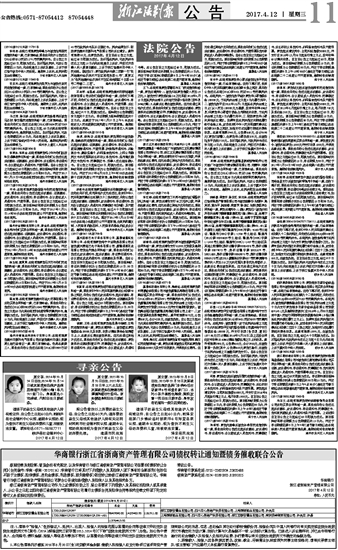 姚炳春、蒋雪芳、徐亚红、邹洪泉:本院受理原告浙江省浙商资产管理有限公司与被告杨静珍、邹瑞华、高其明、黄永平、姚炳春、蒋雪芳、徐亚红、邹洪泉抵押合同纠纷一案,原告诉请判令:1、确认原告对八被告分别所有的坐落于魏塘镇富康花苑7幢1梯301室,坐落于魏塘镇花亭公寓4幢17梯401室,坐落于罗星街道嘉华世纪城学仕华庄8幢,坐落于魏塘镇富康花苑6幢2梯102室,坐落于魏塘镇富康花苑11幢1梯401、501室的国有土地使用权【善国用(2003)字第1-6168号土地证、善国用(2005)字第1-1984号土地证、善国用(2010)第00205683号土地证、善国用(2003)字第1-1450号土地证、善国用(2003)1-1457号土地证】及其地上附着物(房权证善字第00084876号、房权证善字第00079072号、房权证善字第S0021679号、S0021680、房权证善字第00063075号、房权证善字第00063178号)在2015嘉善商初字第687号民事调解书债权的人民币215万元的范围内享有优先受偿权;2、本案诉讼费由被告承担。因无法通过其他方式送达,现依法向你们公告送达起诉状副本、原告提供的证据材料复印件、民事裁定书、应诉通知书、举证通知书、诉讼风险通知书、合议庭组成人员通知书等。本公告发出之日起经过60日,即视为送达。提出答辩状和举证的期限为公告期满后的15日内,并定于举证(答辩)期满后第3日上午9时00分(遇法定节假日顺延)在本院第二法庭开庭审理,逾期将依法缺席裁判。嘉善县人民法院