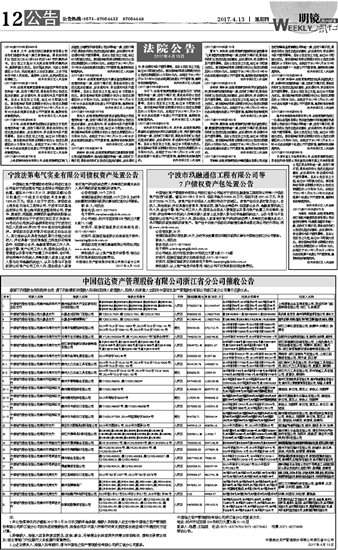 中国信达资产管理股份有限公司浙江省分公司催收公告