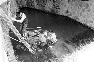 现场情况紧急,消防人员一边联系排水闸口的工作人员打开闸门,一边安排2名消防人员下水,在排水口的位置实施救援。