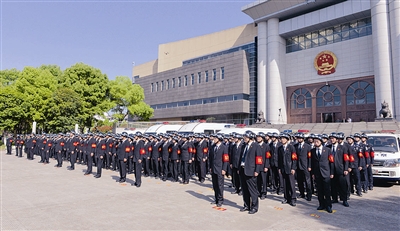 4月15日上午,绍兴市中级法院南广场,数百名干警整装待发,数十辆警车警灯闪烁,绍兴法院“破难一号”执行攻坚大会战正式启动。这意味着,绍兴为期一个月的执行攻坚行动也随之拉开序幕。