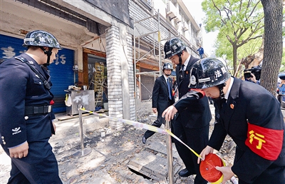 4月15日上午11:00,42名执行干警奔赴嵊州金湾国际花城的执行现场,在小区内拉起警戒线,并封闭大门。当天,干警们要对10间房屋开展腾退工作。