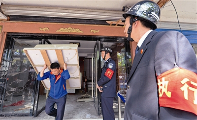 行动当天,执行人员、街道办事处和社区干部、部分人大代表和政协委员来到房屋进行强制腾退。陈某和丈母娘都不在家,于是执行人员进入房屋,进行摄像、摄影,对屋内的家具、物品进行详细清点,由负责登记造册的人员进行记录,然后由搬家人员将室内的家具、物品搬运到为其租赁的房屋内。