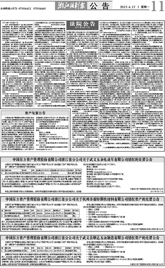 中国东方资产管理股份有限公司浙江省分公司关于武义五圣电动车有限公司债权的处置公告