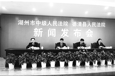 | 4月18日,湖州中院和德清法院共同举行知识产权审判新闻发布会 |