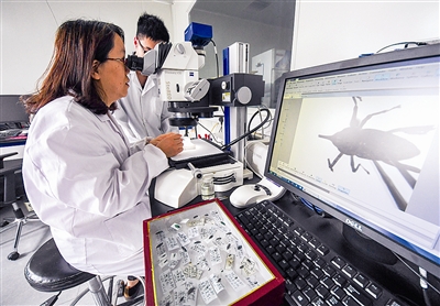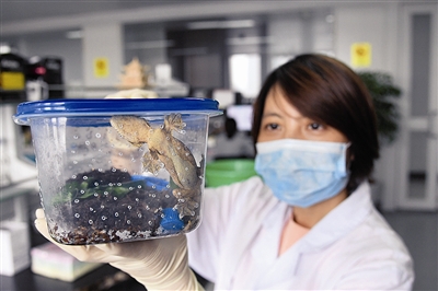 一走进实验室,记者就闻到了一股化学药水的气味,动植物检验检疫实验室主任张明哲博士笑着说,“这个味道就对了!”张明哲说,研究院从进境邮包中截获过各种动物,其中有不少濒危物种,有的甚至十分危险。2015年10月,他们截获濒危野生动物——双带水巨蜥;2016年3月,截获鉴定为极度濒危的蓝宝石华丽雨林蜘蛛,这种蜘蛛具有强烈的毒性……