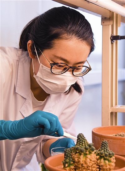 在实验室走道一侧,记者意外地发现了一间花房,里面摆满了长相各异的“肉肉”,被红外灯照射着。张明哲解释说:“这可不是什么一般的花房,更别小看这些‘肉肉’,它们可都是身价不菲的濒危植物啊!这些也都是从邮包里截获的,是《濒危野生动植物种国际贸易公约》(CITES)附录内的物种。我们还要对它们做进一步的DNA分子鉴定。”