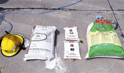 | 实验用的3种粉剂——淀粉、面粉、腻子粉 |