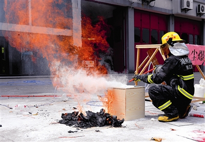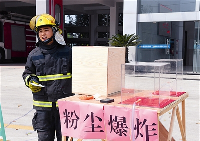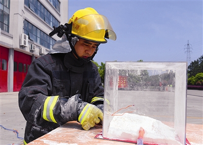 随后,消防员又用面粉、腻子粉进行了实验,现场实验的效果与淀粉差不多。