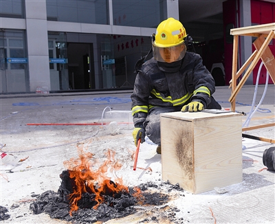| 消防员将遥控电子点火装置放进亚克力箱子 |