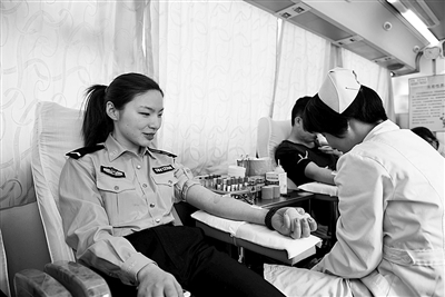上午8时,献血车上聚集了不少民警,大家手持献血单,有条不紊地配合工作人员完成填写表格、测量血压和验血等献血前准备工作,现场氛围温馨、满满正能量。持续到中午11时,已献血4300毫升。