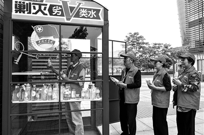 昨天,长兴市民督导团成员和乡镇“河小二”正通过验水亭检测水样是否为劣V类水。市民通过采集各地各类水样,填好含有河道信息、联系方式等信息的标签纸后,利用亭子里的设备进行检测。